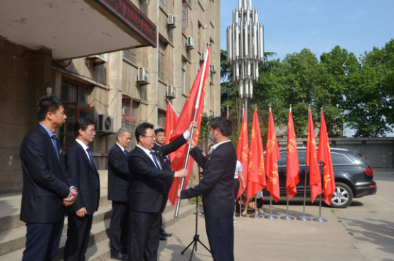 圖為黨委書記、執行董事劉曉東為黨支部授旗