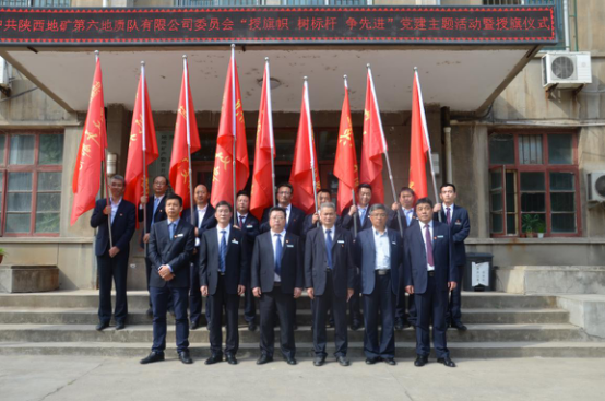 儀式上,黨委書記、執行董事劉曉東分別向公司所屬7個黨支部、2個青年突擊隊授予“黨支部”旗幟和“青年突擊隊”旗幟。接旗后,地調所所長、黨支部書記李長壽代表7名黨支部書記、潼關礦開部青年突擊隊隊長唐升強代表青年突擊隊分別作了表態發言。